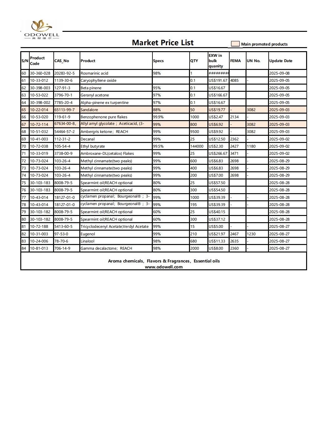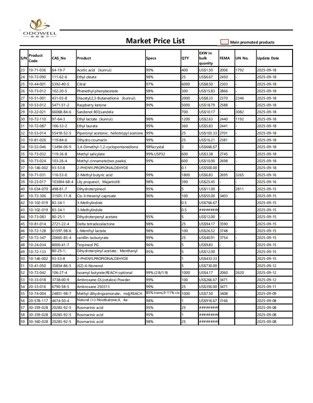 Odowell-нарық бағалары-2025.8.27-25.09.29